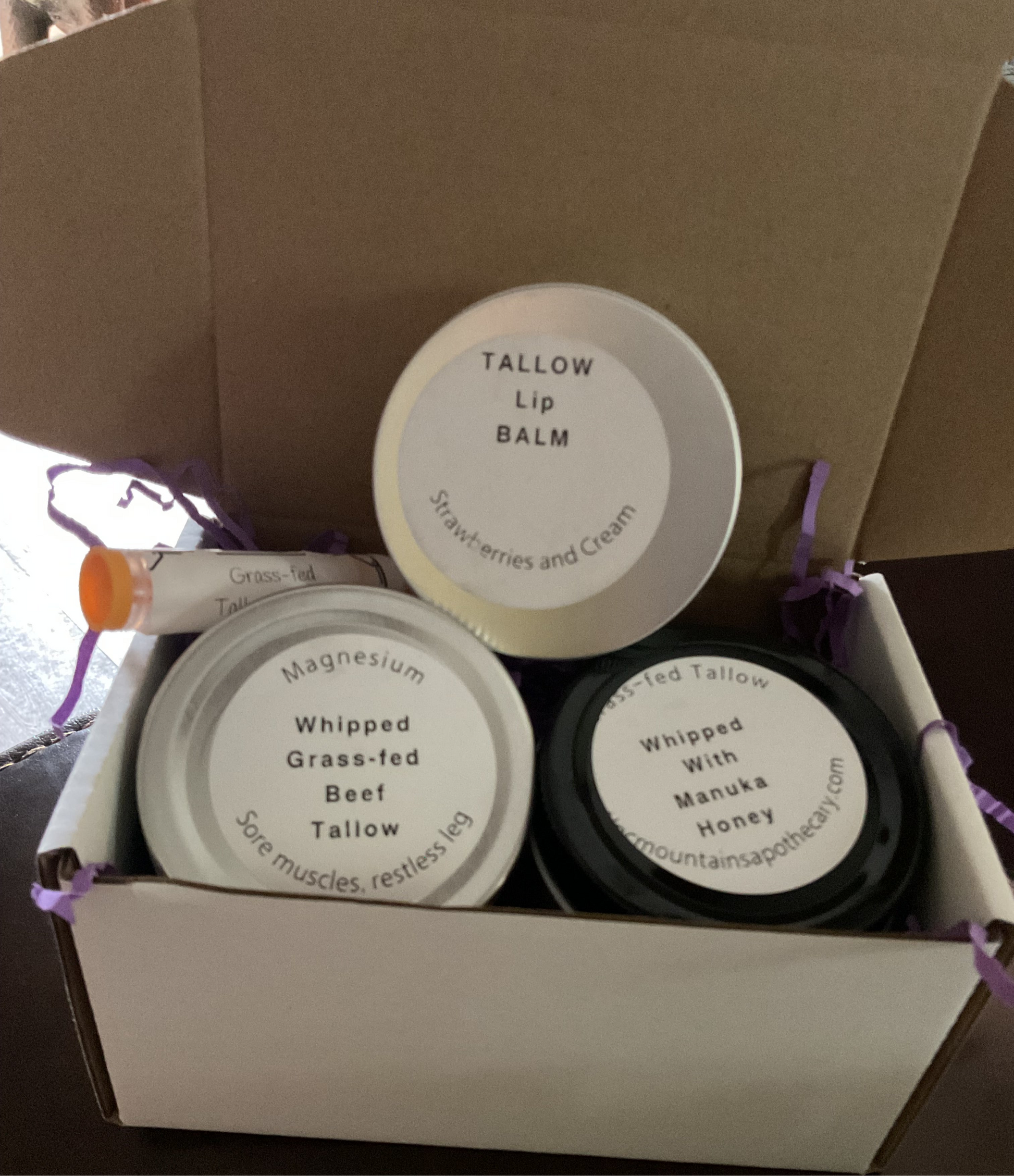 Magnesium tallow for restless leg and neuropathy, sore muscles, 4 oz, Manuka Honey face cream tallow 4 oz, tallow lip balms.